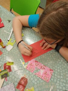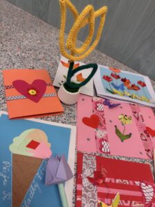 Na tuto akci navazovaly v našem okrese také jarní prázdniny. I na toto období jsme nachystali výtvarné tvoření pro děti, tentokrát na téma Valentýn. Tvořili jsme obrázky z pistácií, srdíčkový strom i veselý mačkací obrázek. Odpoledne se sešly starší děti, které si tradiční technikou tkaní na kolíkovém stavu vyrobily barevný polštářek na židli.